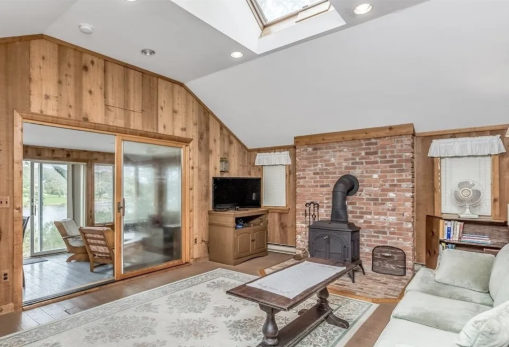 This cottage, which overlooks Jockey Creek in Southold, features two bedrooms and one full bathroom, an eat-in kitchen, and of course, a wood-burning stove. It is listed for $1,250,000 by Douglas Elliman Real Estate.