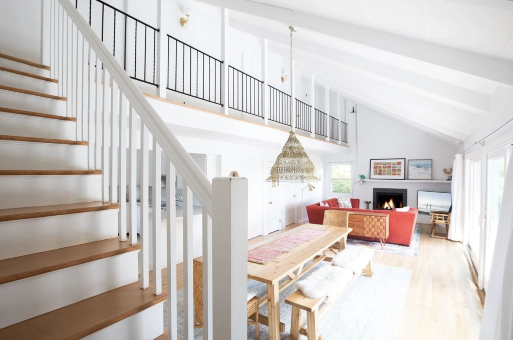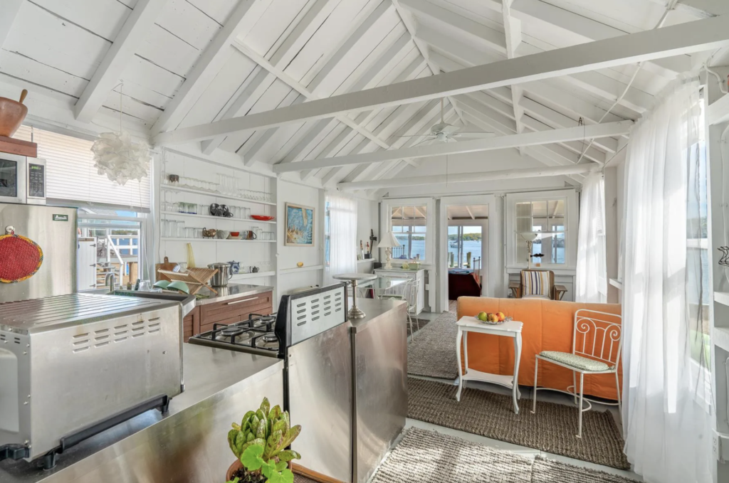 With vaulted ceilings, a timeless white interior, and tons of natural light, this beach home gives the warmest welcome. The home features a wood-burning fireplace, four bedrooms, and of course, a water view. It is listed for $995,000 by The Elkin Team at Compass.