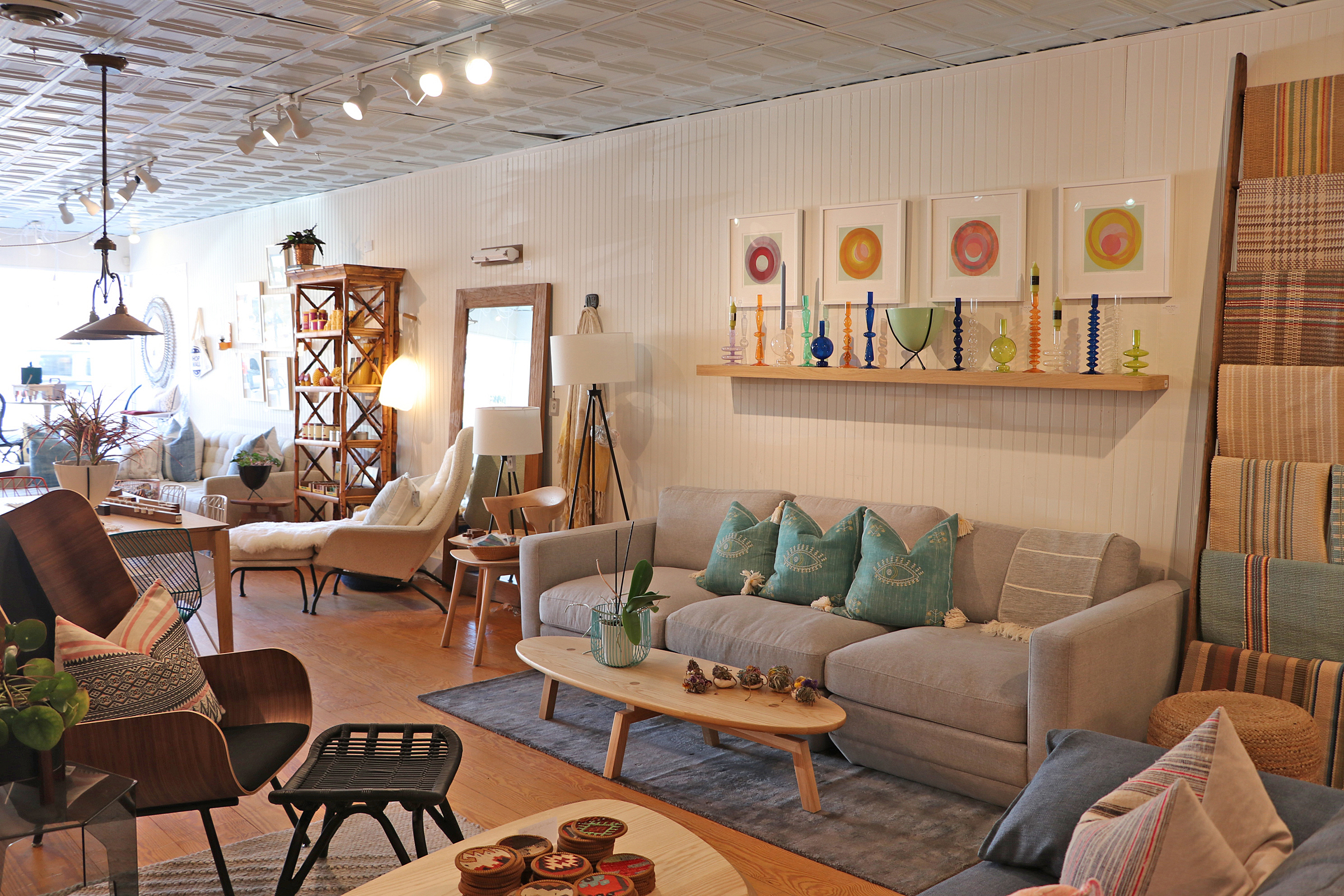 When Laura O’Brien opened Fez & Ivy in 2019, she maximized the space in her narrow shop to showcase a chic selection of antiques, rugs, furniture, home accessories and gifts.