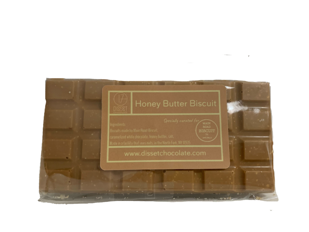 A combination of two North fork favorites — Disset Chocolate and Main Road Biscuit have partnered up this giving season to create a honey butter biscuit chocolate bar. This limited edition candy is only available while supply lasts, so you’ll want to head to Main Road Biscuit soon to pick up a bar (or a few), $13.
