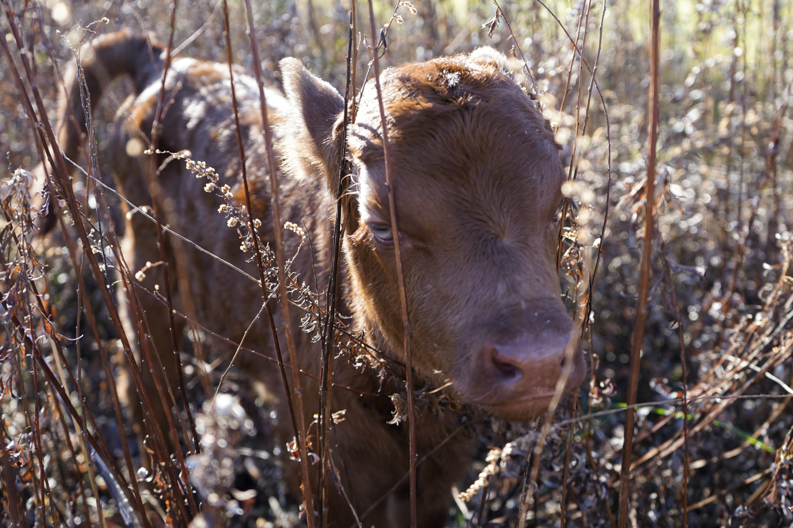 When Holly and Chris Browder were out collecting eggs on their farm Monday afternoon, they were greeted by a surprise calf in the field. One of the two Dexter cattle they had acquired last spring had given birth to a male calf. We took a visit to Browder’s Birds to explore the farm and meet its newest addition: Rudolph the Red-Dun Dexter.